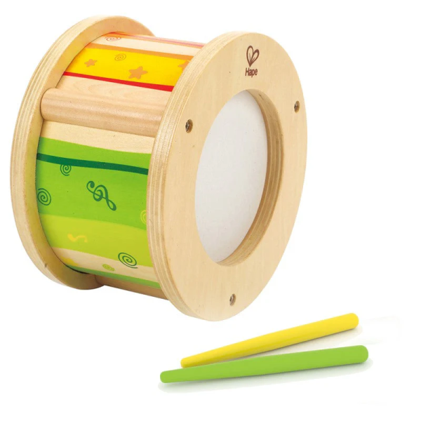 Söt liten trätrumma från märket Hape. Två trumpinnar medföljer.